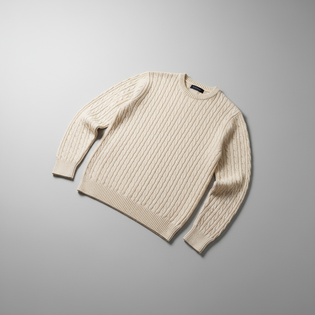 Crafted from a premium wool blend, this thick knitted sweater features an iconic crew neck with a distinct woven cable pattern. Designed for the modern gentleman, it delivers effortless warmth, structure, layering versatility, and sophistication for every winter occasion.