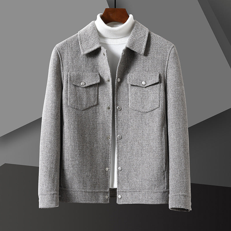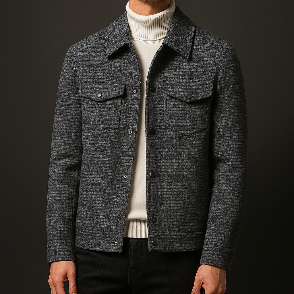 A classic shacket reimagined in natural wool fiber with a subtle woven texture. Superior craftsmanship shapes a wardrobe essential that brings structure, comfort, and character to any occasion.