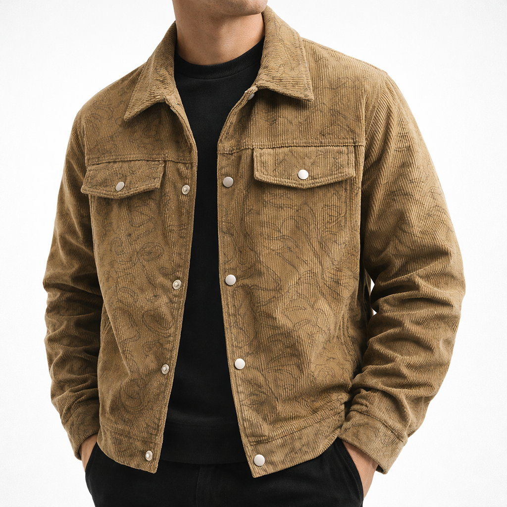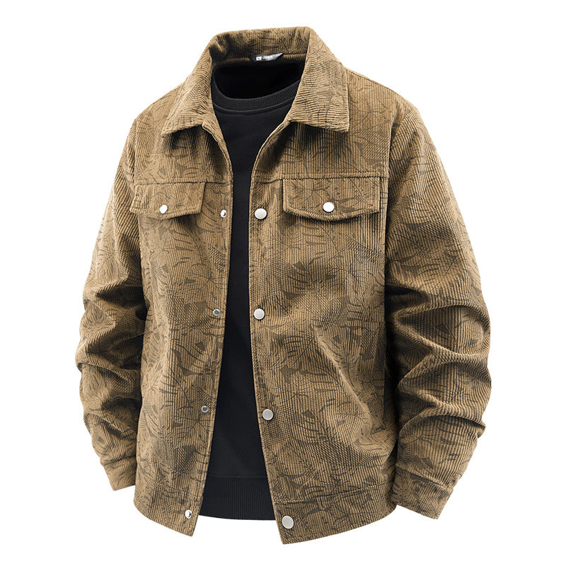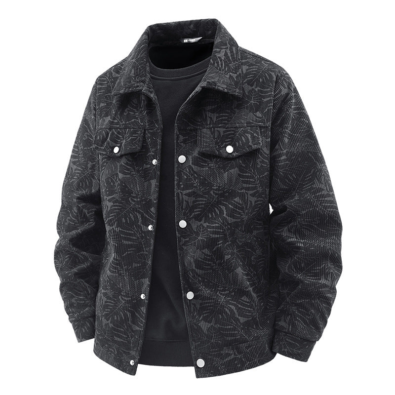 Finished in a thick corduroy with a bold palm-pattern overlay, this shacket gives you warmth, texture, and standout character the moment you throw it on. Cut in a relaxed classic fit, it moves with you comfortably while keeping its structure. Dual flap chest pockets and a stud-button front give you everyday versatility, so you’re covered - season after season.