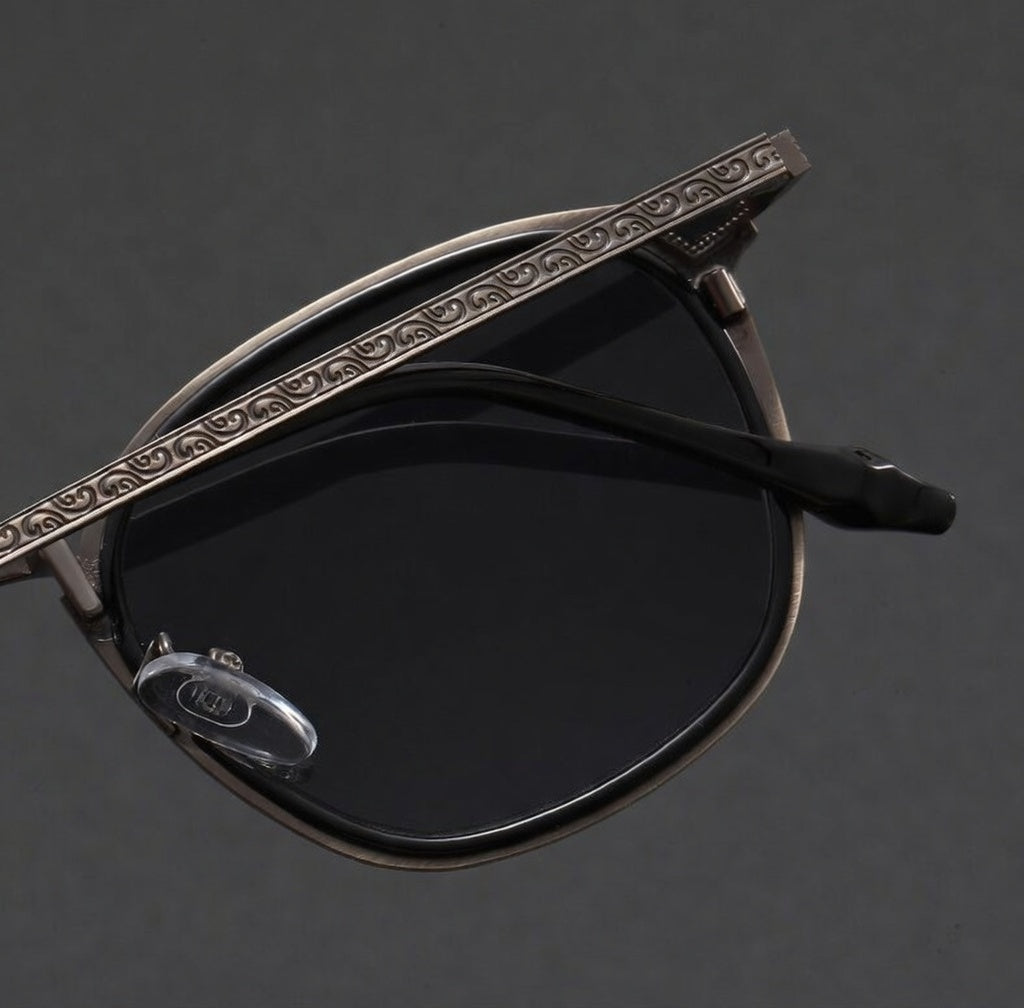 Our signature dual-tone brushed chrome alloy frames feature carved inner-arm detailing that hits different in the light. UV400 scratch-resistant lenses keep your look sharp, while adjustable nose pads and a lightweight build sit easy and secure from daytime flex to after-dark.