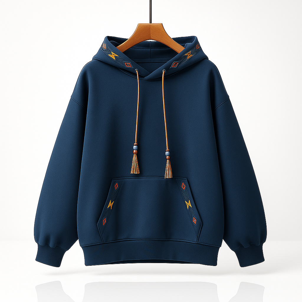 Ultra-soft, snuggly, and super-thick - like a warm embrace on a cold winter night. Finished with a subtle feather-pattern texture and long tassel drawstrings, this hoodie blends standout detailing with effortless comfort. The perfect weekender piece for style that feels as good as it looks.