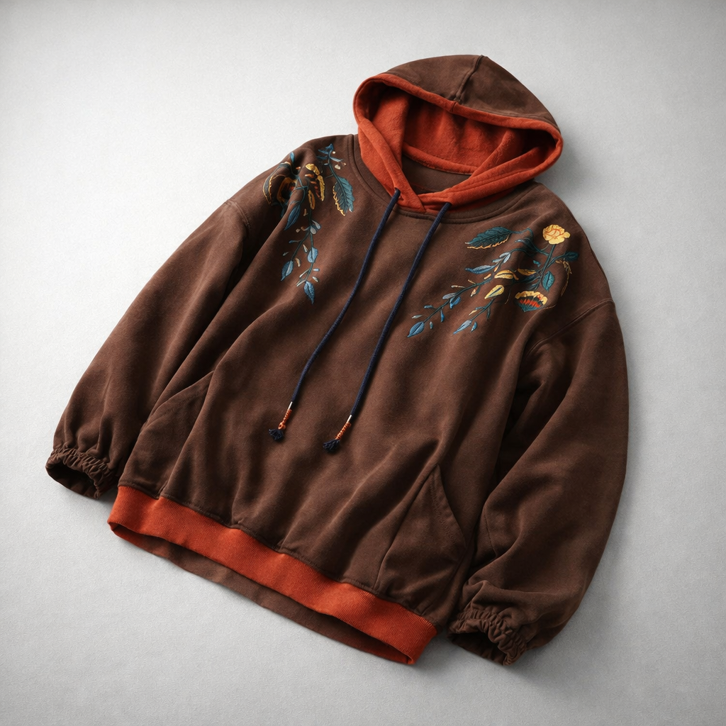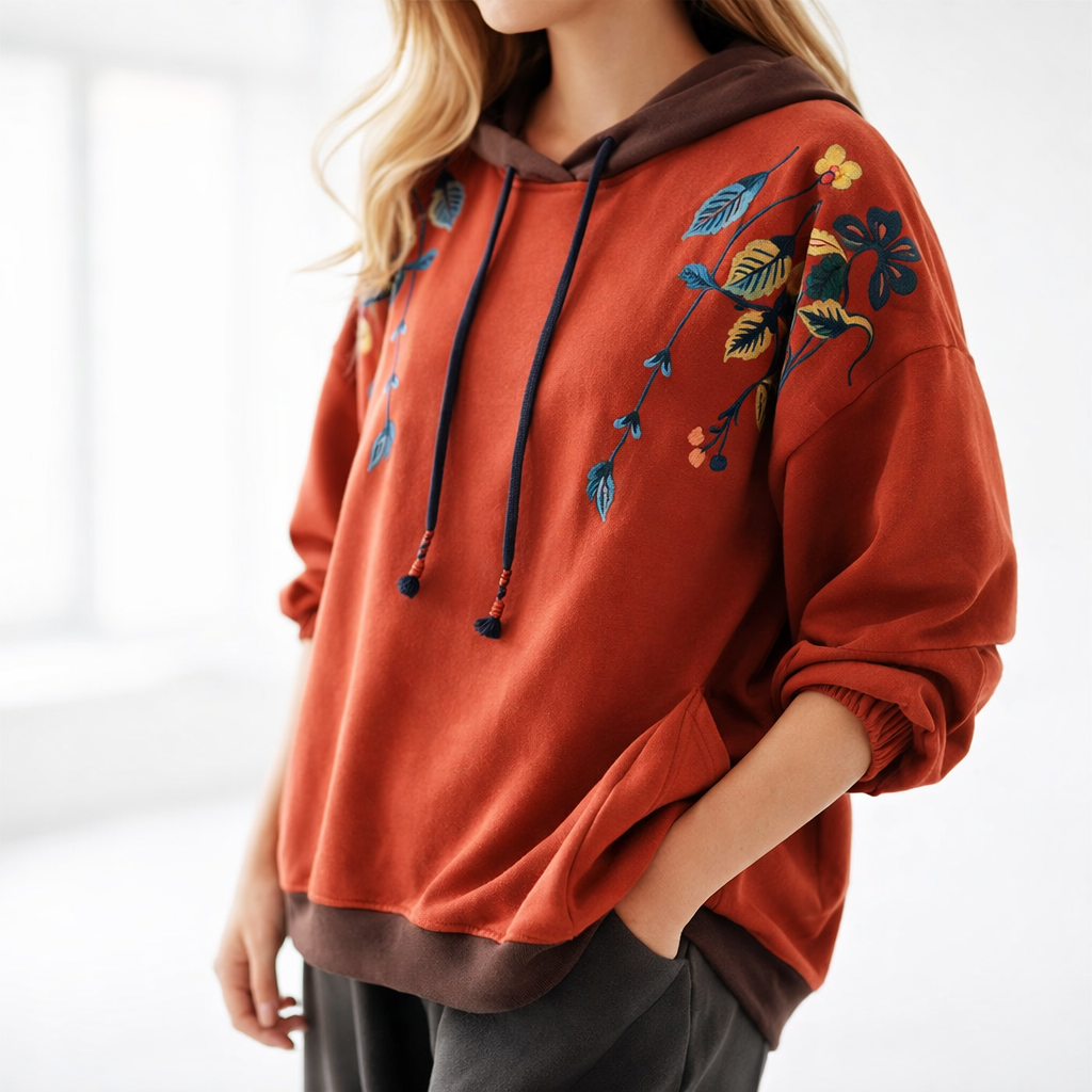 Soft, expressive, and full of character. With bold floral detailing and tassel accents, this hoodie brings warmth, comfort, and personality to your everyday wardrobe - no effort required.