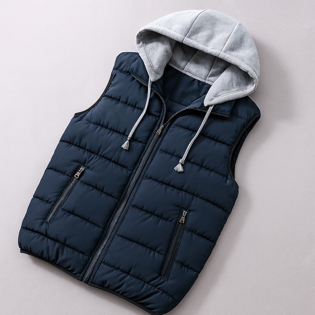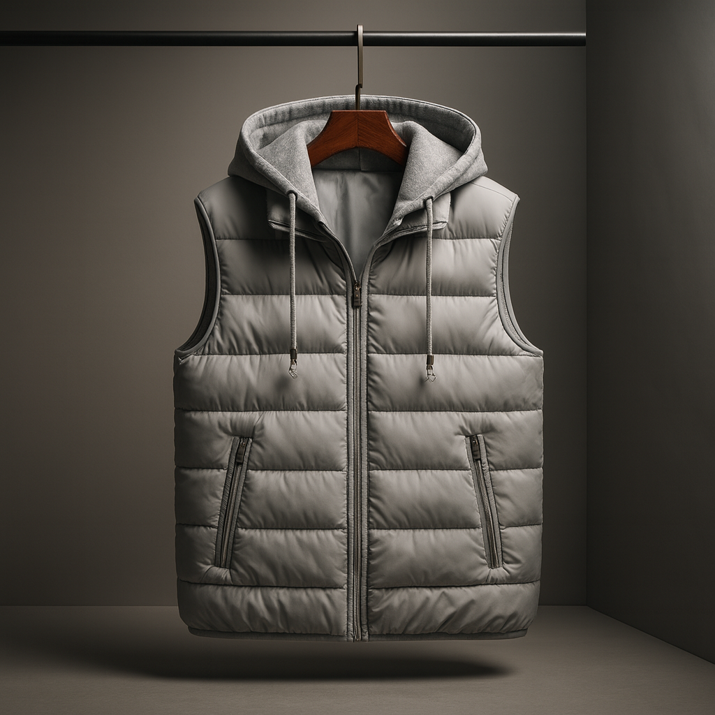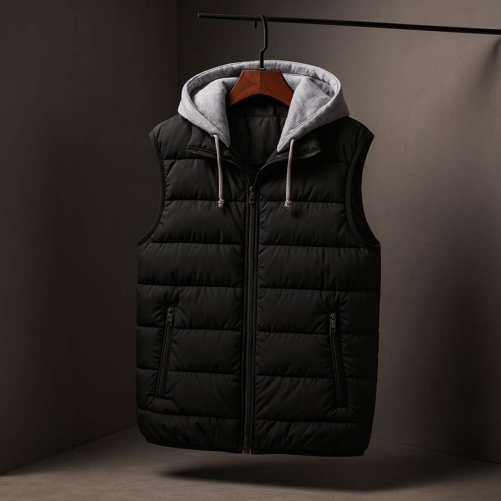 A fusion of warmth, comfort, and everyday utility. Slip it on and it moves with you like built-in armor - insulating against the cold while keeping your look sharp and composed. Designed to handle changing conditions with ease, this vest delivers confidence, protection, and versatility from every angle. Finished with a removable drawstring hood, secure zip pockets, and a water-resistant outer, it’s built for daily wear without compromise.