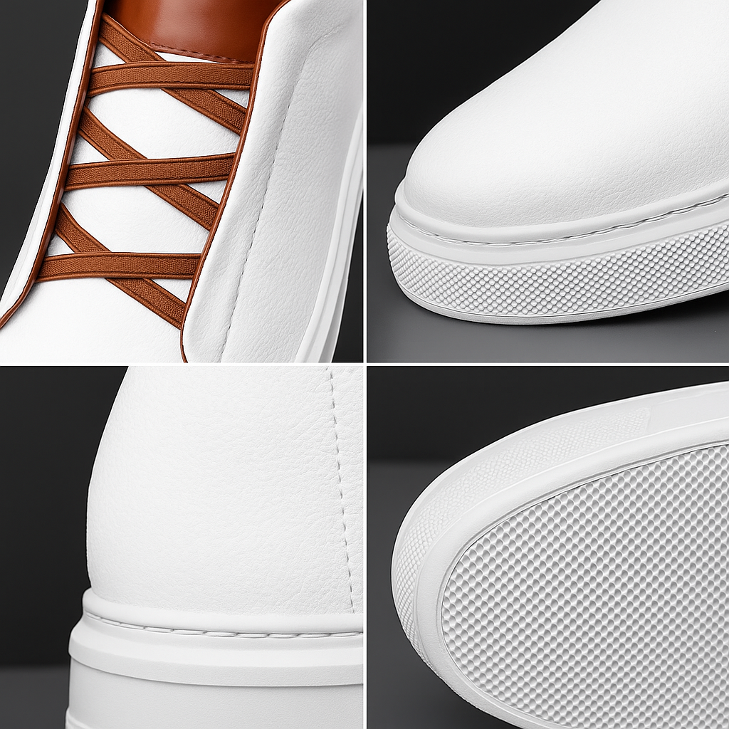 These minimalist sneakers redefine modern street sophistication. Crafted from pebbled leather with smooth accent panels, they deliver all-day comfort through a cushioned insole, supportive arch design, and a durable rubber sole -blending effortless style with everyday ease.
