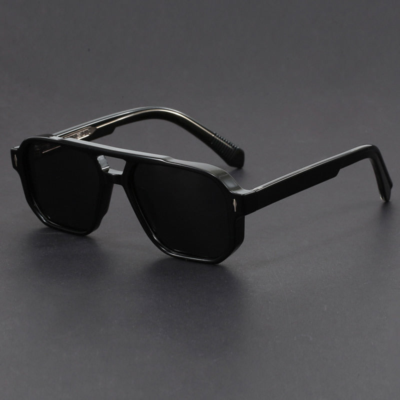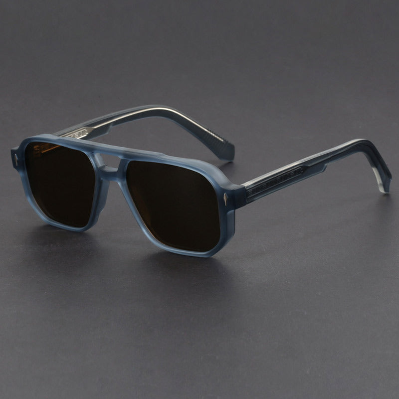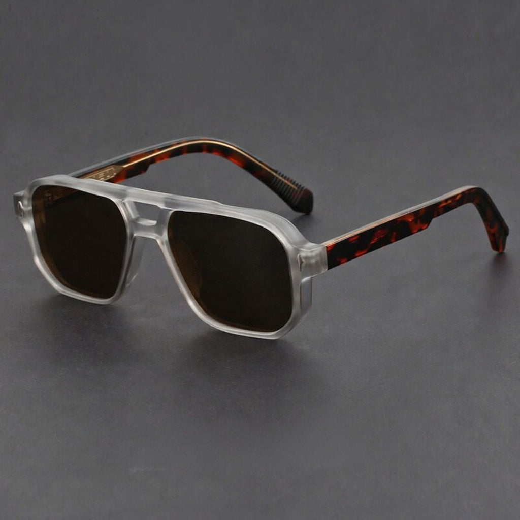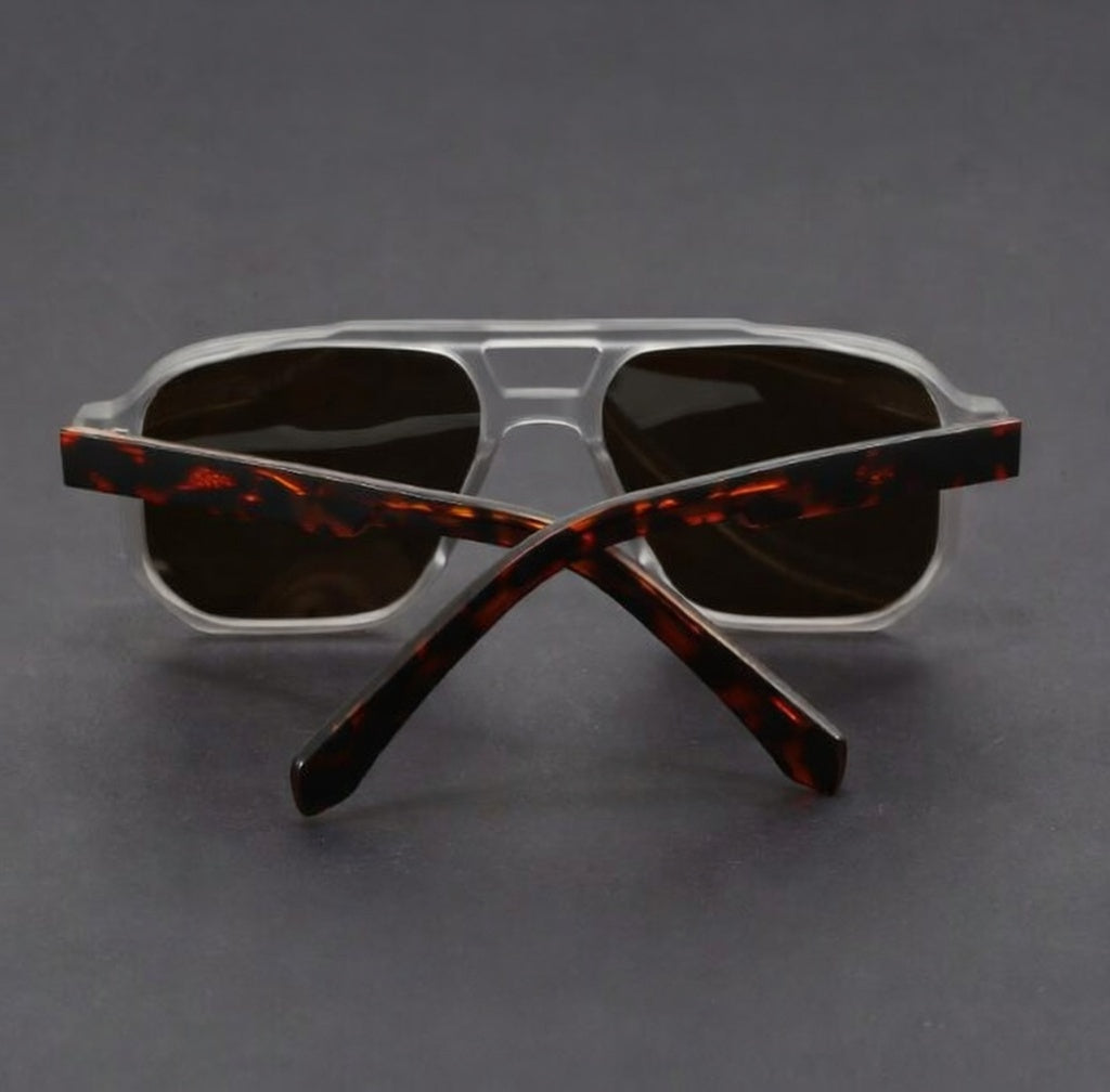 Signature meets aesthetic in our squared profile that frames the face with authority. Finished with engraved inner-arm metal detailing inspired by European craftsmanship and full UV400 protection, they balance premium design cues with a lightweight, easy-wear feel from city runs to travel days.