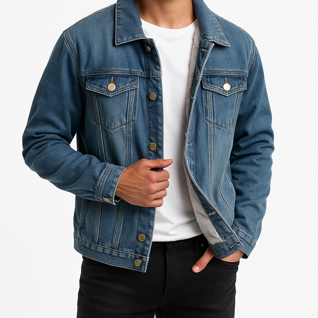 This denim-look trucker jacket is lined with thick sherpa for superior warmth and comfort, all while maintaining a crisp, structured silhouette. Complete with a stud-button placket and practical internal and external pockets, it delivers effortless versatility for the modern man.