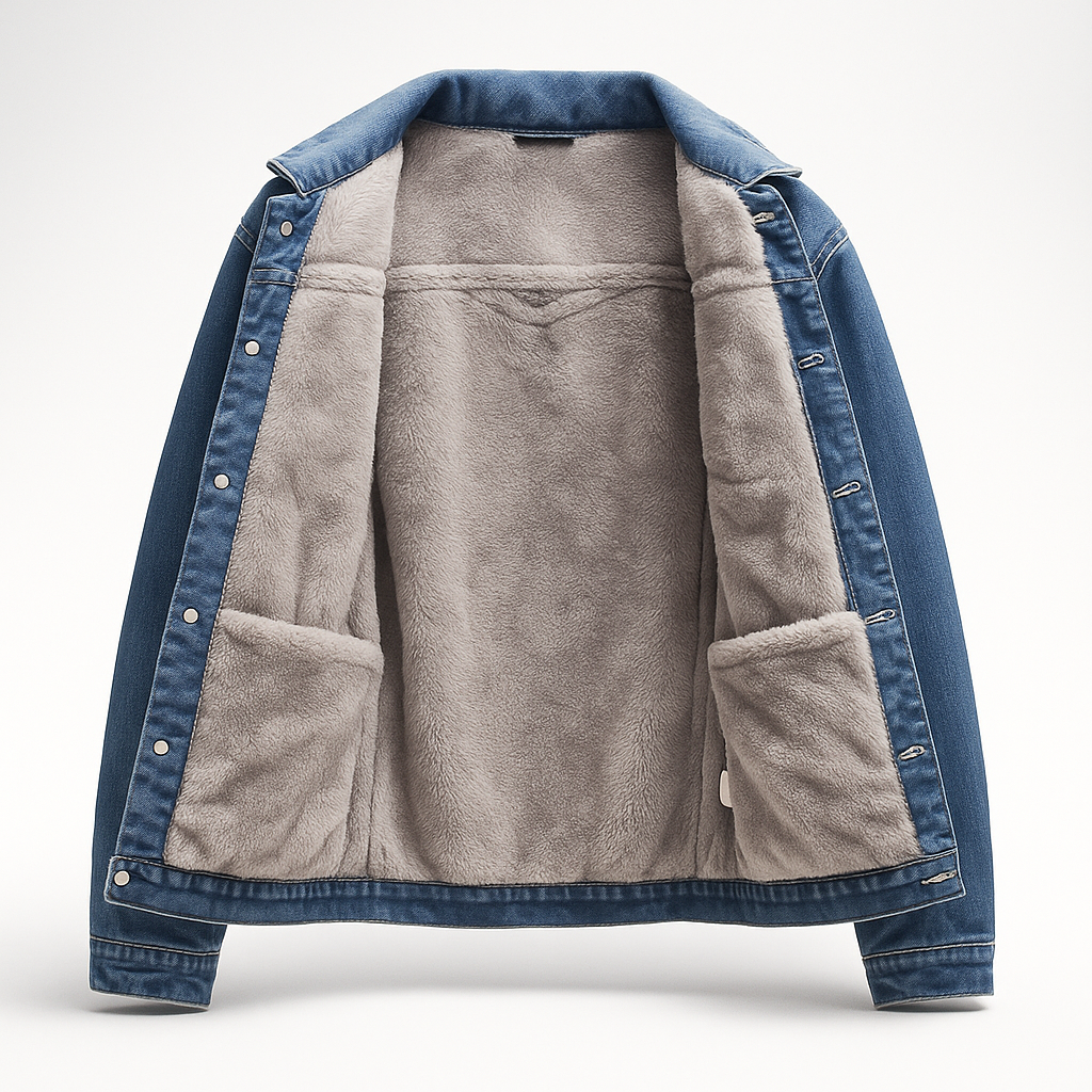 • Premium denim-look exterior with soft sherpa lining