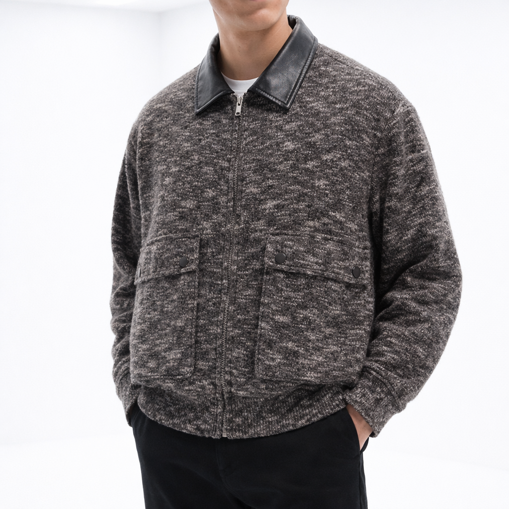 Crafted from a heavyweight melange knit, this bomber delivers sweater-level warmth with a structured outerwear feel. Dense, insulating, and built to hold its shape, it’s the go-to layer for cold days when style still matters.