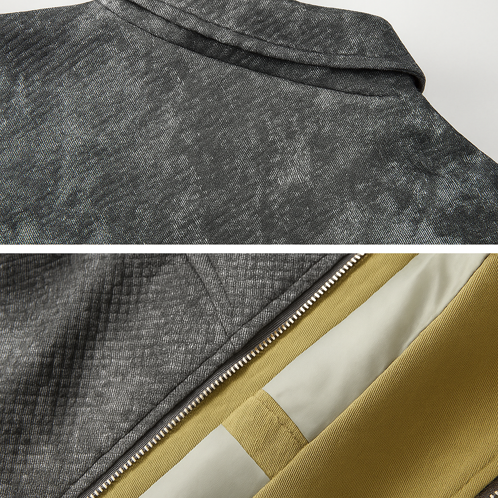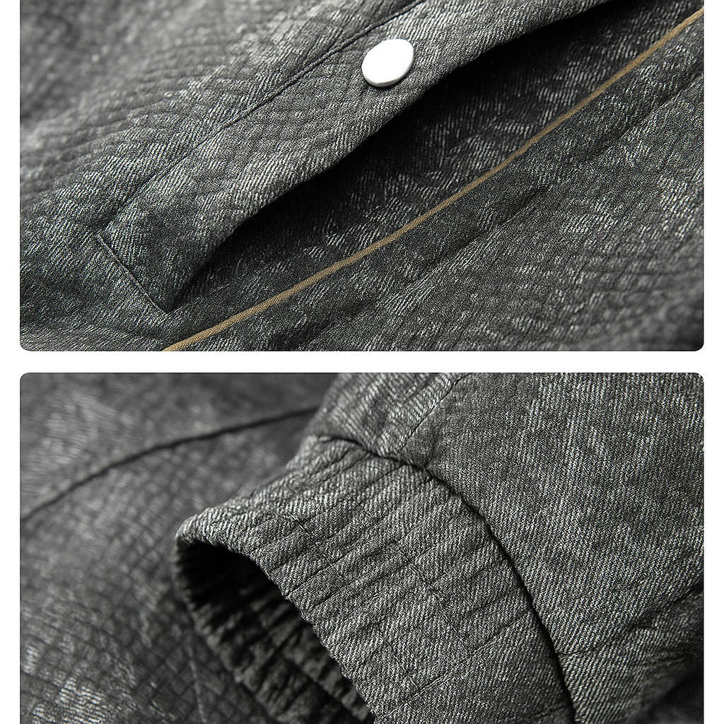 Finished in a scaled, reptile-inspired texture that brings a bold, modern edge to your outerwear. A relaxed fit with ribbed cuffs and hem keeps your look sharp while delivering effortless comfort. A classic turn-down collar paired with stud-closure pockets brings all the everyday versatility the urban man needs to stay ahead in style.