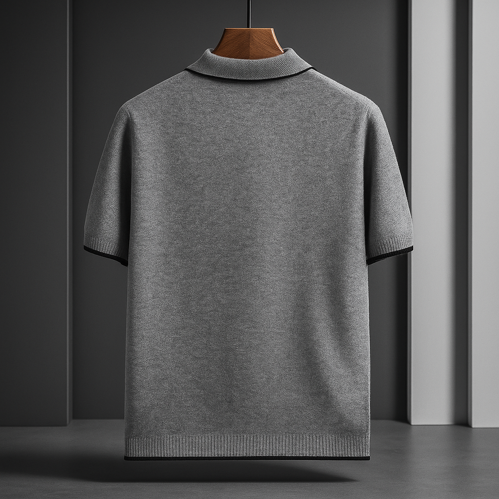 Crafted from pure merino wool and cashmere, this refined polo offers superior softness and breathability compared to traditional cotton. Naturally temperature-regulating, it keeps you cool in summer and warm in winter. Finished with a dual-tone trim and classic button-up collar, it’s a versatile staple for every season.